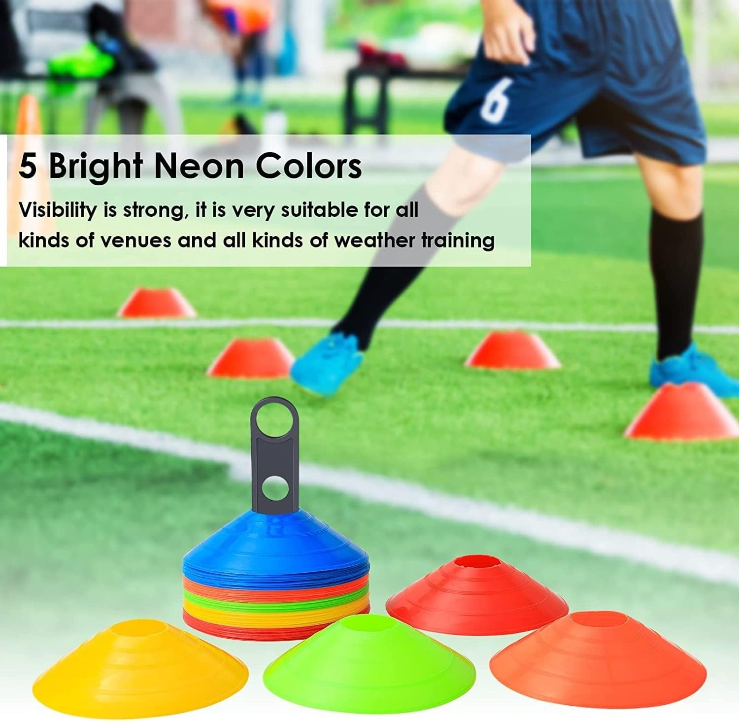- Couleurs vives et charmantes : ce kit de cônes de football est disponible en cinq couleurs : rouge, vert, orange, jaune et bleu. La couleur est brillante, ne se décolore pas, peut marquer clairement les choses pour répondre à vos différents besoins d'entraînement ou de jeu.